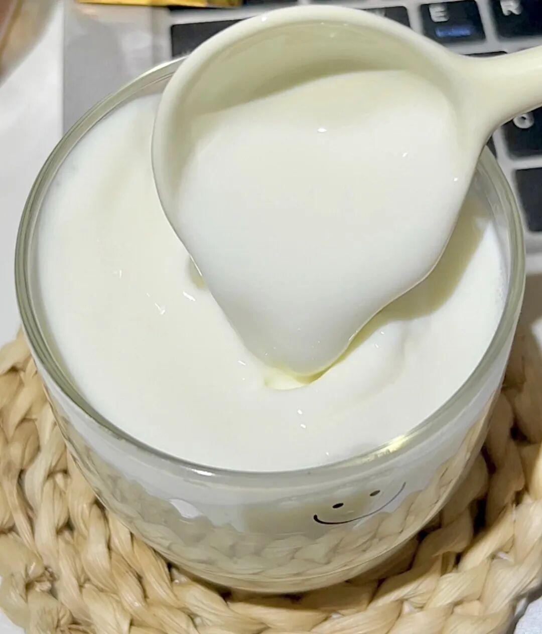 加热到60度之后取出,奶皮凝结终点彰着! 奶香四溢,微微品上一口 乳汁在舌尖碰撞融解,浓纯仪态赶紧俘获味蕾 铭刻小技巧家里煮牛奶 最心爱的即是逐渐等着奶皮凝结 然后捞起来一口吃掉